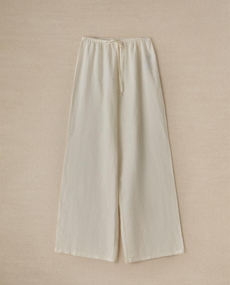 بنطال كتان بشريط خصر مرن وأربطة أمامية قابلة للتعديل.