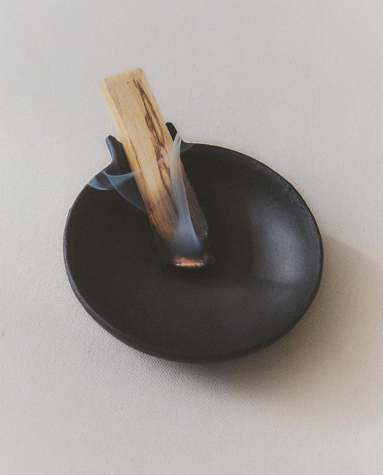 مبخرة خزف على شكل وعاء بحامل للأغصان العطرية.