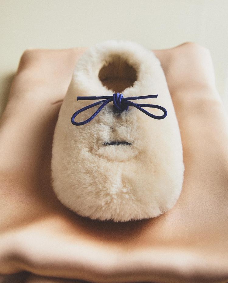 خف منزلي للأطفال من الفرو الاصطناعي. سطح داخلي مبطن بفرو اصطناعي. إغلاق بأربطة.