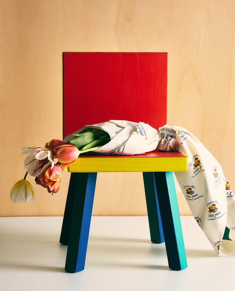 كرسي خشبي للأطفال مع ظهر ومقعدة مستقيمة بمظهر متعدد الألوان x The Animals Observatory. يأتي كقطعة واحدة، مجمعة.