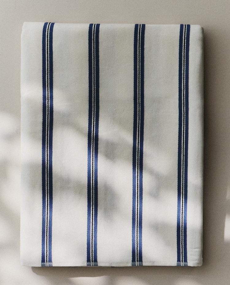 منشفة شاطئ قطنية بتصميم مخطط رفيع.