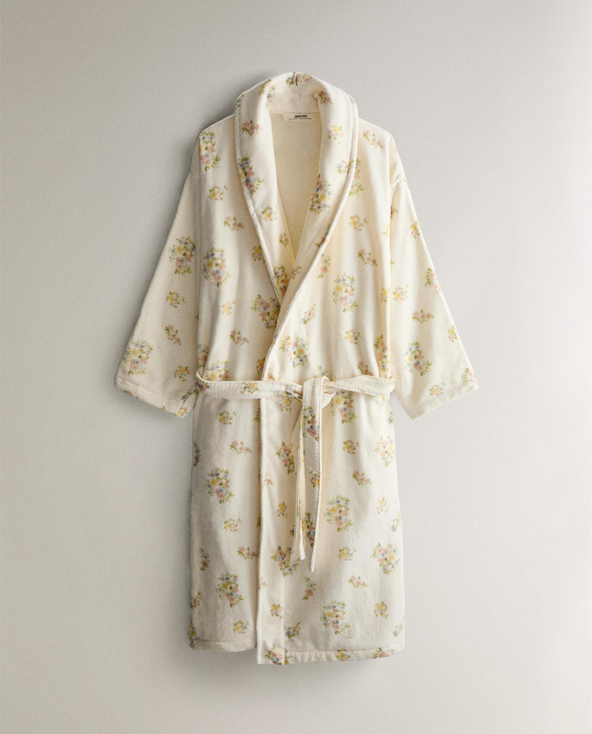 FLORAL PRINT VELOUR BATHROBE