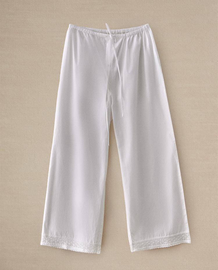 COTTON TROUSERS WITH LACE TRIM | Zara Home Kuwait
