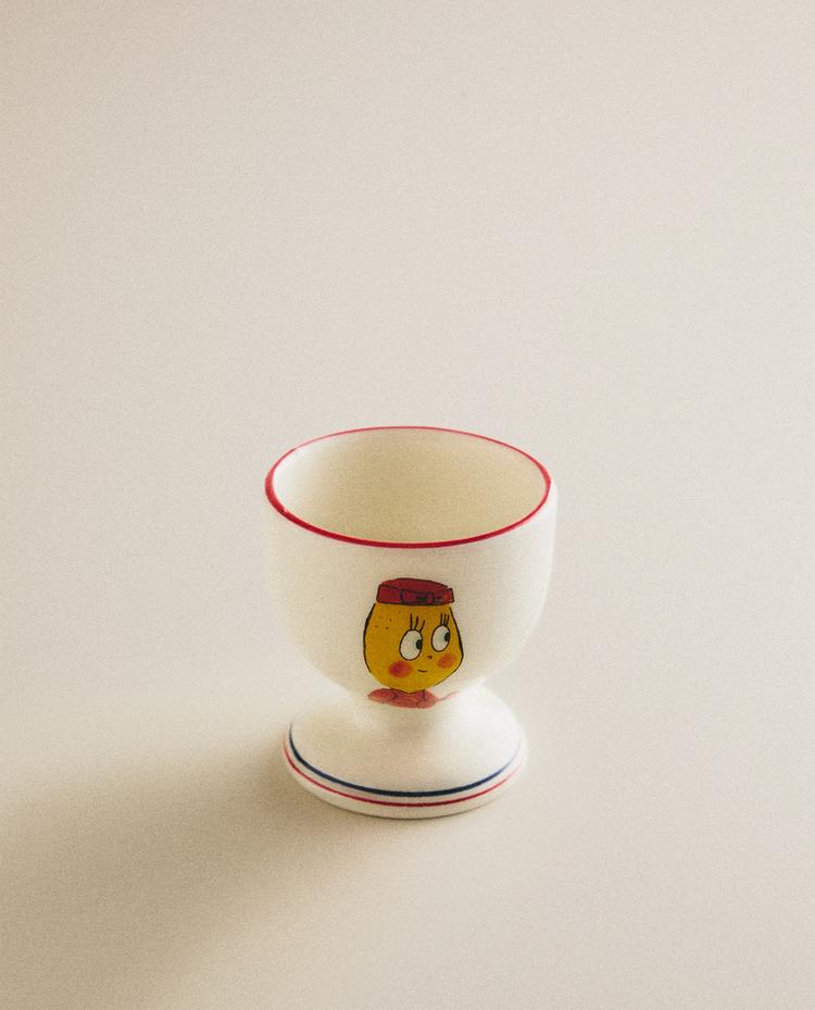 Porcelain egg cup with a contrast-coloured edge, decorated with Limoncella x The Animals Observatory motifs.