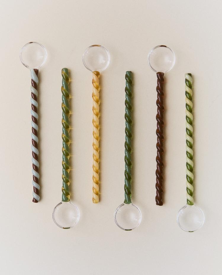 PACK OF MULTICOLOURED GLASS DESSERT SPOONS (PACK OF 6)