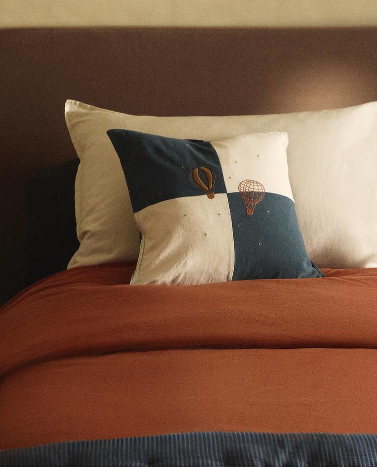 Детский пододеяльник из хлопка плотностью 300 нитей с тканым узором.