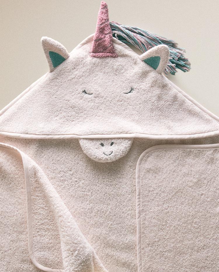 منشفة حمام بغطاء رأس مصنوعة من قطن ملتف صغير بتصميم حصان أحادي القرن.