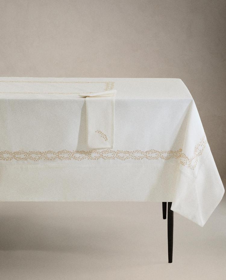 PLANT EMBROIDERY SATEEN TABLECLOTH 16,900,000 LBPECRU|2290/021/712Tablecloth made of cotton sateen with embroidered plant motifs.Add