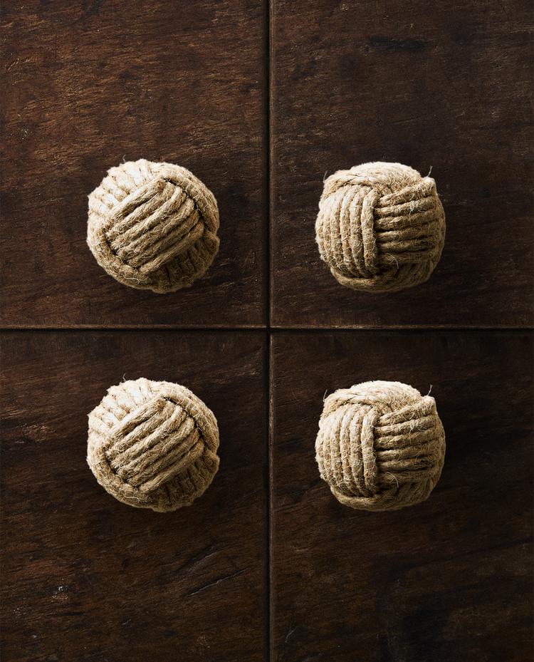 Rankenėlės spintoms ir kitiems baldams, pagamintos iš virvelės, supintos į mazgą.