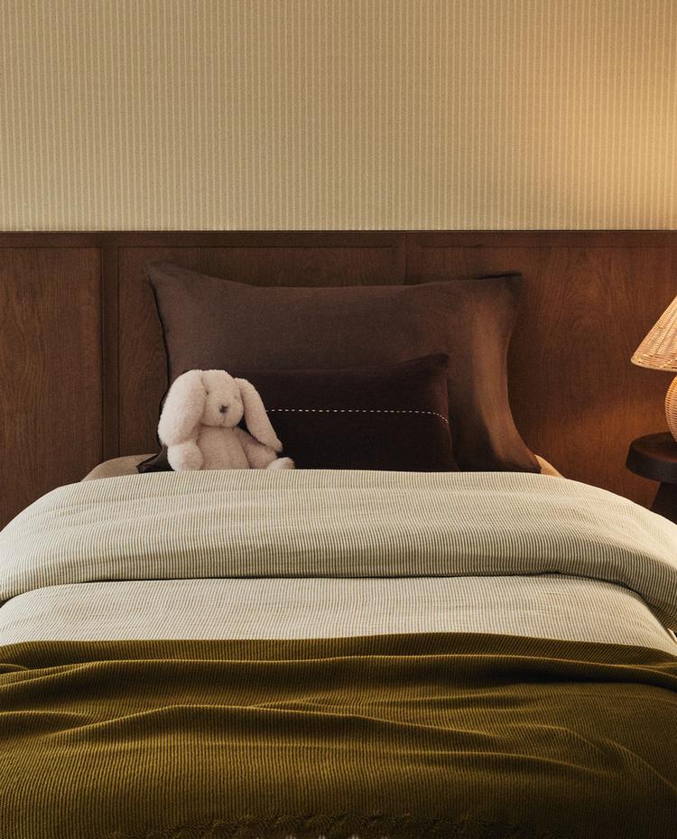 Kinderbettbezug aus Baumwollgaze mit gestreiftem Design aus gefärbtem Garn.