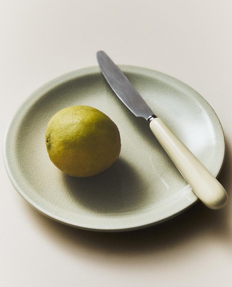 Emaljēts keramikas deserta šķīvis ar kodinātu efektu.