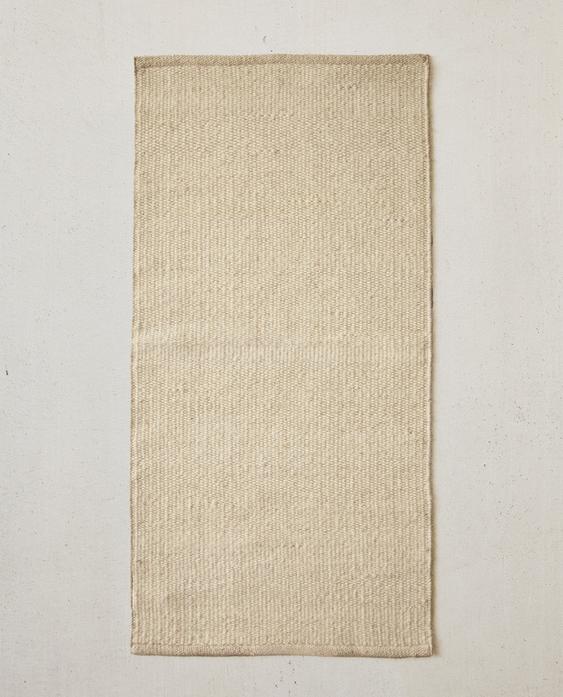 Gaišas krāsas vilnas paklājs. Pieejams koridora paklāja izmērs.