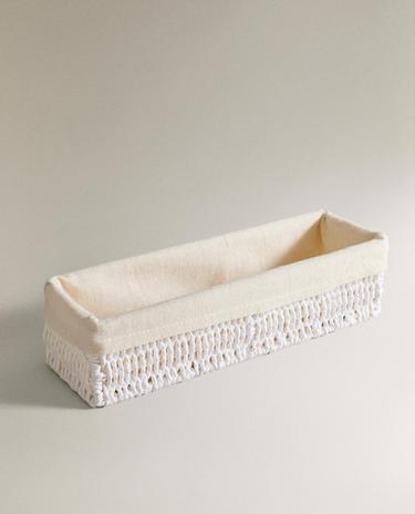 Garš, pīts taisnstūrveida grozs mantu uzglabāšanai ar metāla konstrukciju, kas pārklāta ar izturīgu papīru.