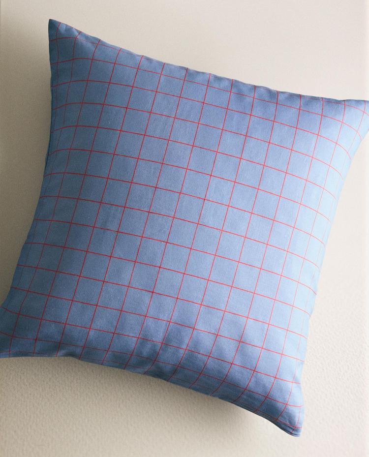 Bērnu lina un kokvilnas spilvendrāna ar kontrastējošu smalku līniju rūtiņu dizainu.