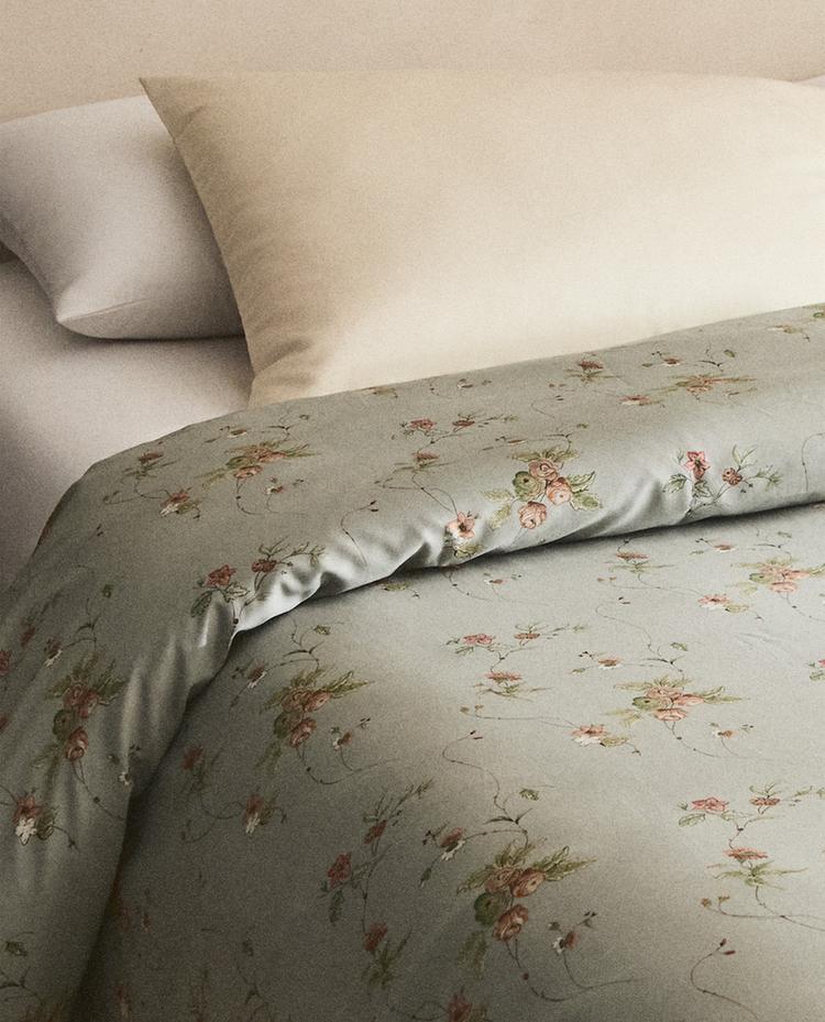 غلاف لحاف ساتان بأغصان وأزهار (كثافة 300 خيط) | Zara Home Morocco