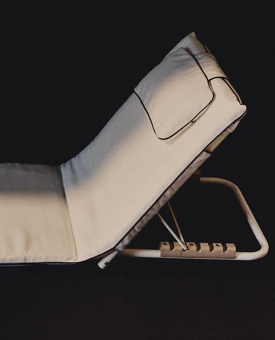 أريكة شاطئ قابلة للطي مصممة للاستخدام على الأرض. تتميز بظهر قابل للانحناء يمكن ضبطه على 6 مواضع ومسند رأس بتفصيل من نفس اللون. تتضمن غلاف سادة مع حافة متباينة ومقبض لنقله بسهولة وحفظه. الغطاء قابل للإزالة بالكامل وقابل للغسل حسب تعليمات العناية.