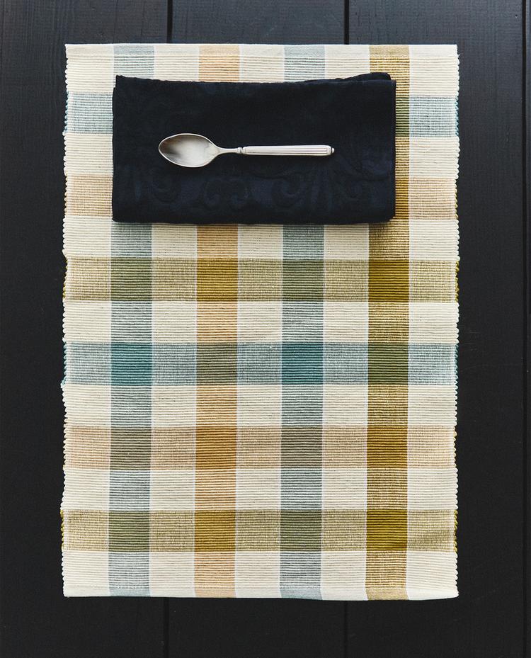 Cotton needlecord placemat with a check design.