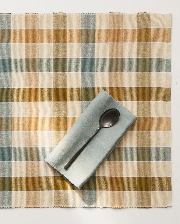 Cotton needlecord table runner with a check design.