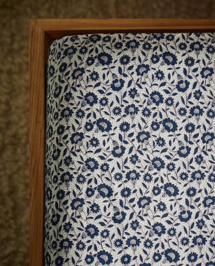 Kids' fitted sheet in 200 thread count percale with a floral print design.