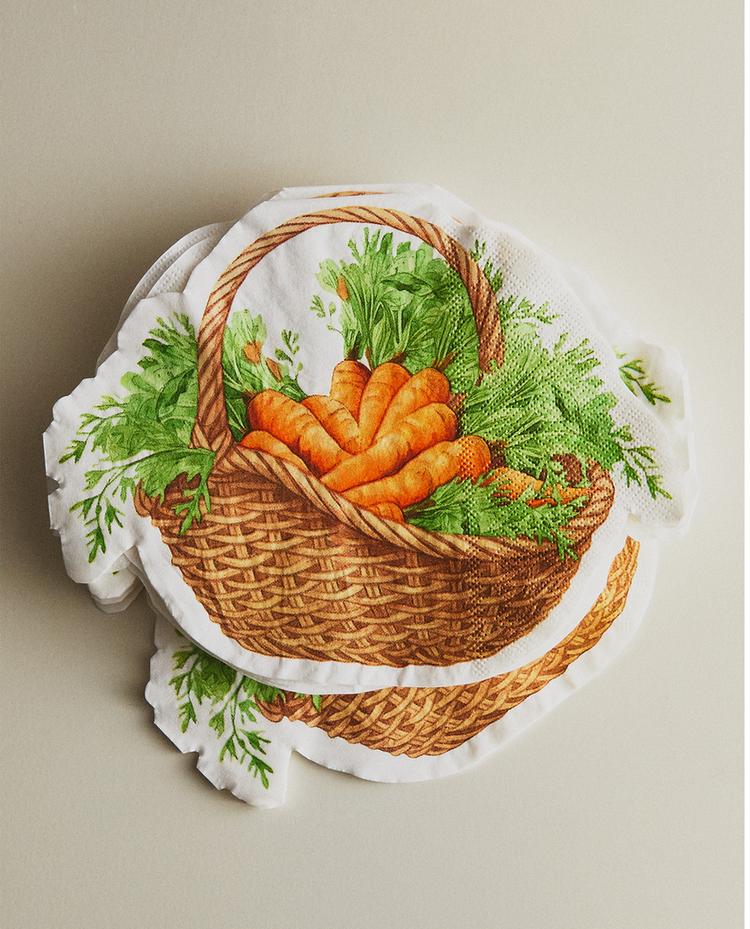 Paper napkins with a soft texture and high absorption capacity, with a basket of carrots design.