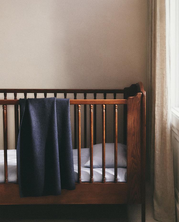 Manta para bebé confeccionada en cashmere, con textura lisa y acabado suave al tacto.