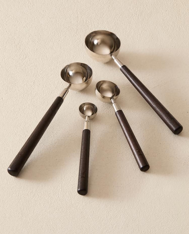 Cucharas medidoras de cocina de acero inoxidable, con mango de madera de acacia.