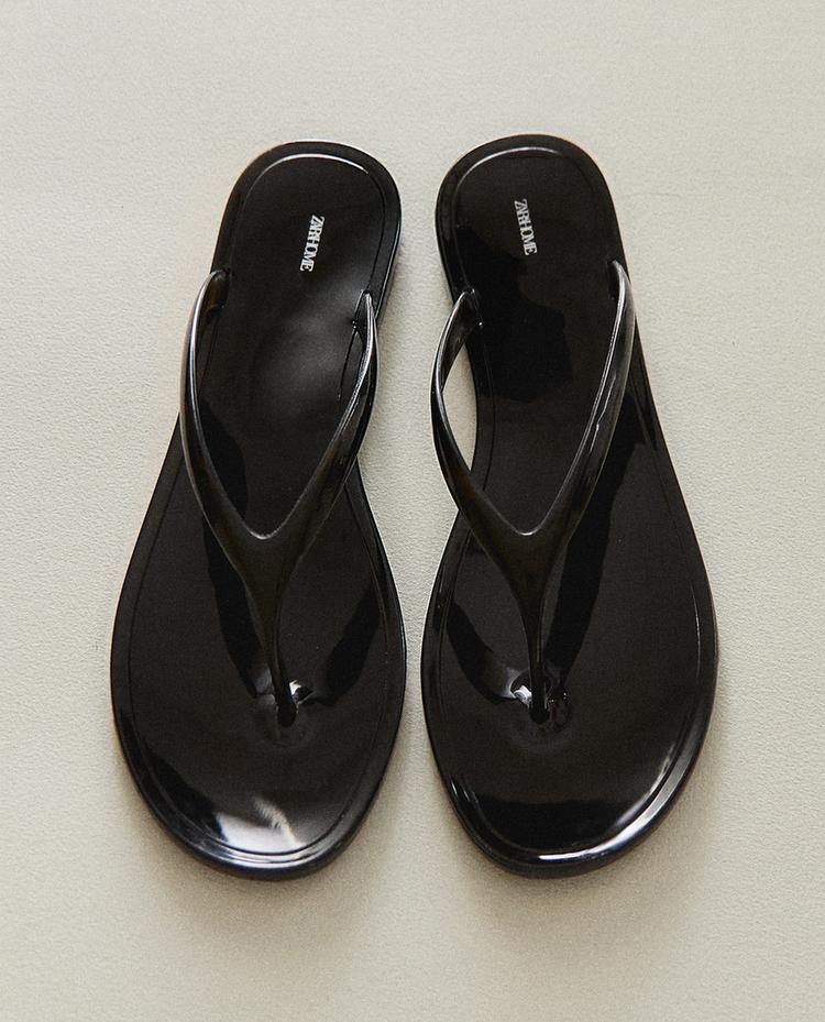 Zapato plano tipo sandalia efecto jelly con tiras con posición para el dedo.