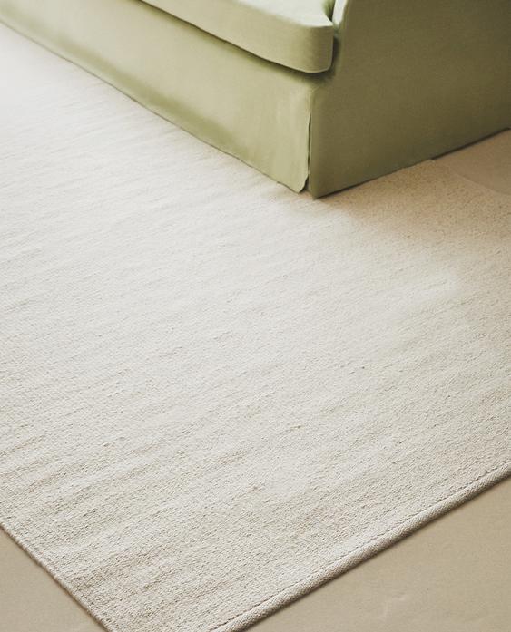 Tapete confeccionado en lana en tono claro. Disponible en tamaño pasillero.