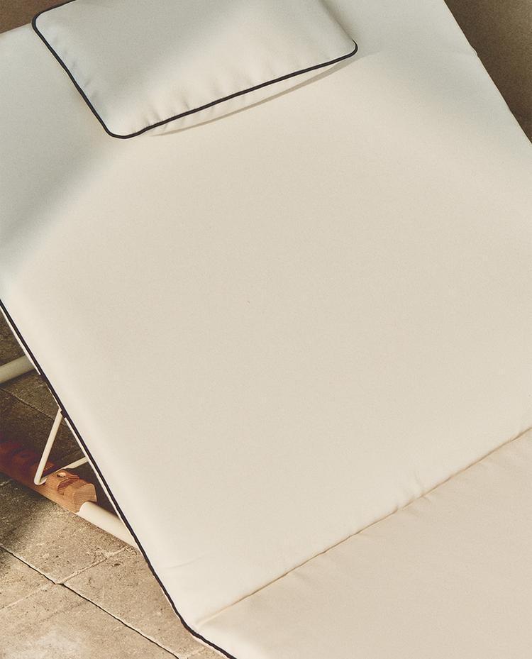 Tumbona de playa plegable de tamaño extra grande, con respaldo reclinable multiposición y reposacabezas a juego. Cuenta con una funda de diseño liso, ribete contrastante y asa para facilitar su transporte y almacenamiento. Es completamente desenfundable y lavable, siguiendo las instrucciones.