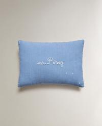 KIDS' TOOTH FAIRY CUSHION 22,99 € * VAT included / excl Shipping cost BLUE|6652/009/400Kids' linen cushion cover with an embroidered 'Mr. Pérez’ slogan. Pocket to store a tooth under the pillow when it falls.Cushion insert not included.Add