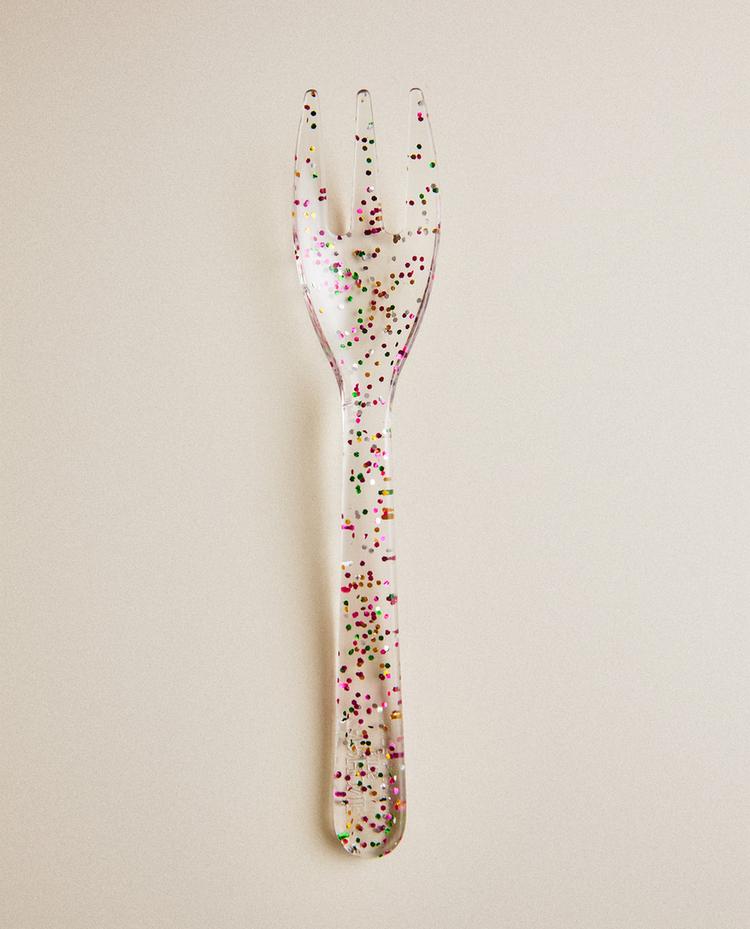 Kids' transparent fork with glitter.