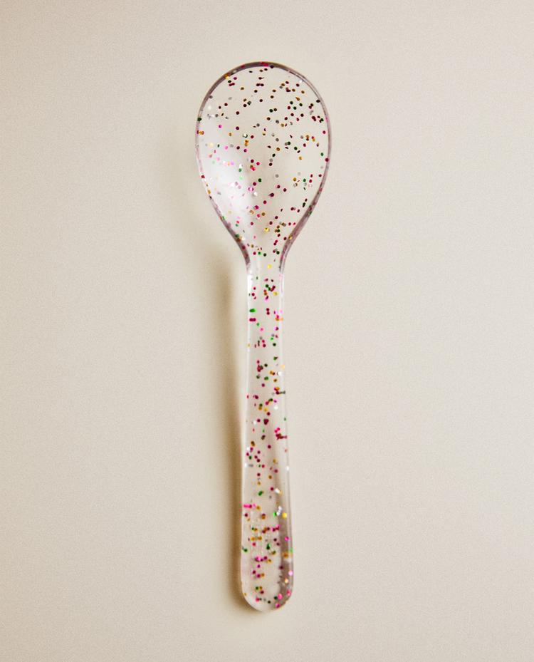 Kids' transparent spoon with glitter.