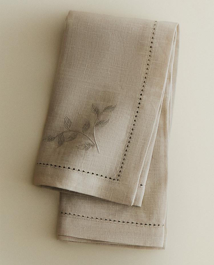LINNEN SERVETTEN MET BLOEMENBORDUURSEL (2-PACK) | Zara Home Nederland