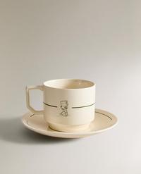 STONEWARE COFFEE CUP AND SAUCER 99 NOKWHITE/GREEN|8205/207/063Stoneware coffee cup and saucer with an illustrated coffee-inspired design defined by fine lines.Capacity: 105 mlShare
