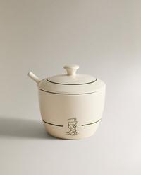 STONEWARE CAFÉ SUGAR BOWL 199 NOKWHITE/GREEN|8205/217/063Stoneware sugar bowl with an illustrated coffee-inspired design defined by fine lines.Includes lid and teaspoon.Capacity: 185 mlAdd