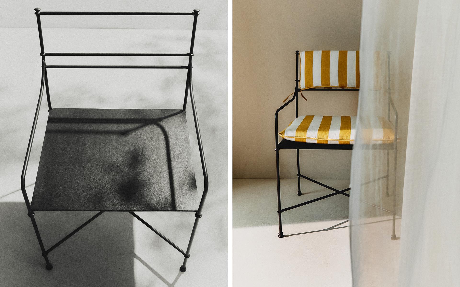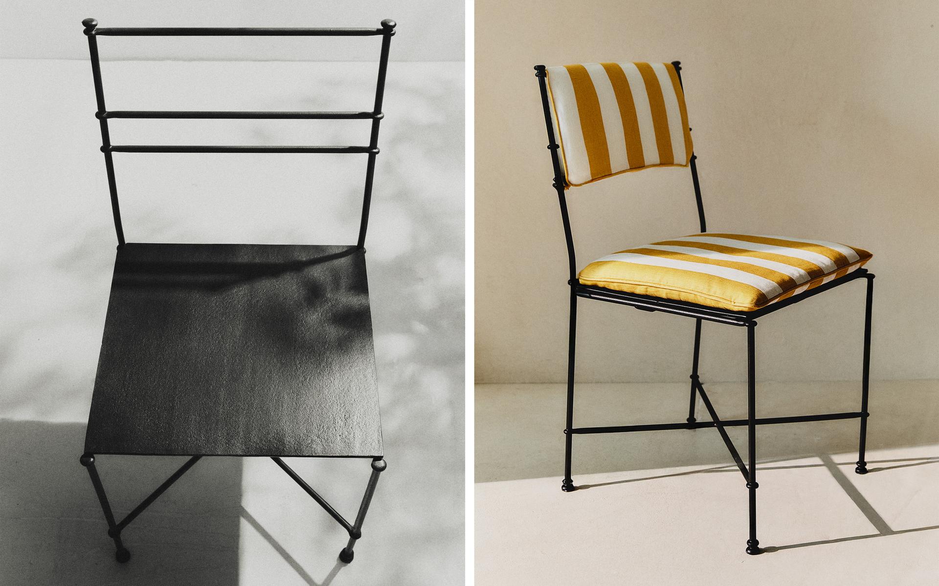 FORGED CHAIR AND STRIPED CUSHIONS
