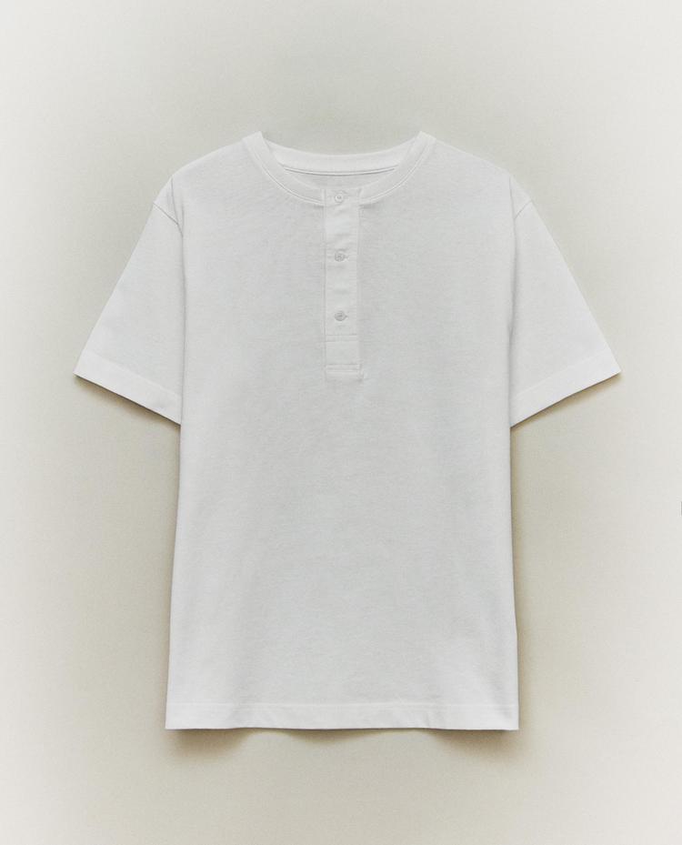 تيشرت قطن بياقة دائرية وأزرار أمامية للإغلاق.