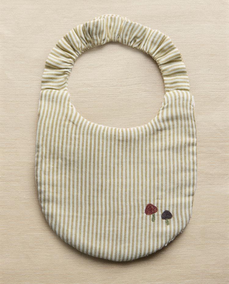 مريلة للرضّع مصنوعة من القطن الملتف الصغير والموسلين بتصميم مخطط بخيط مصبوغ وفطر مطرز على الجانب.
