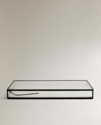 JEWELLERY BOX WITH BLACK METAL BORDER 25.90 OMRBLACK|4307/099/800Glass jewellery box with a black metal border.Add