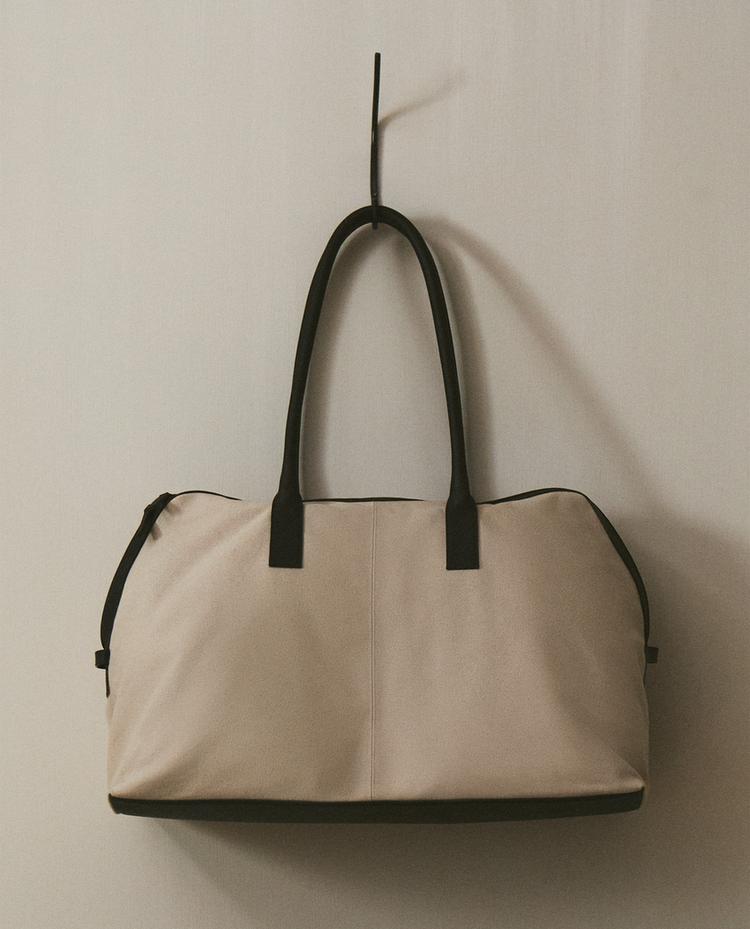 Bolsa de viaje con cuerpo en canvas y piel. Detalle de asas y tiradores de piel. Cierre mediante cremallera. Dispone de cartera interior de canvas y piel a conjunto con cierre de cremallera.