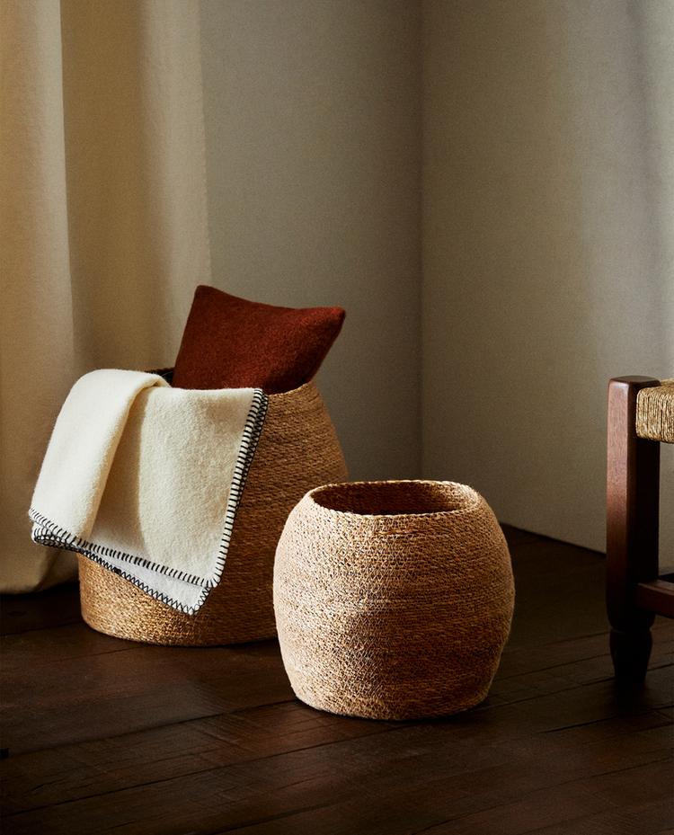 Cesta de seagrass de base redonda ideal para almacenaje o como elemento decorativo.