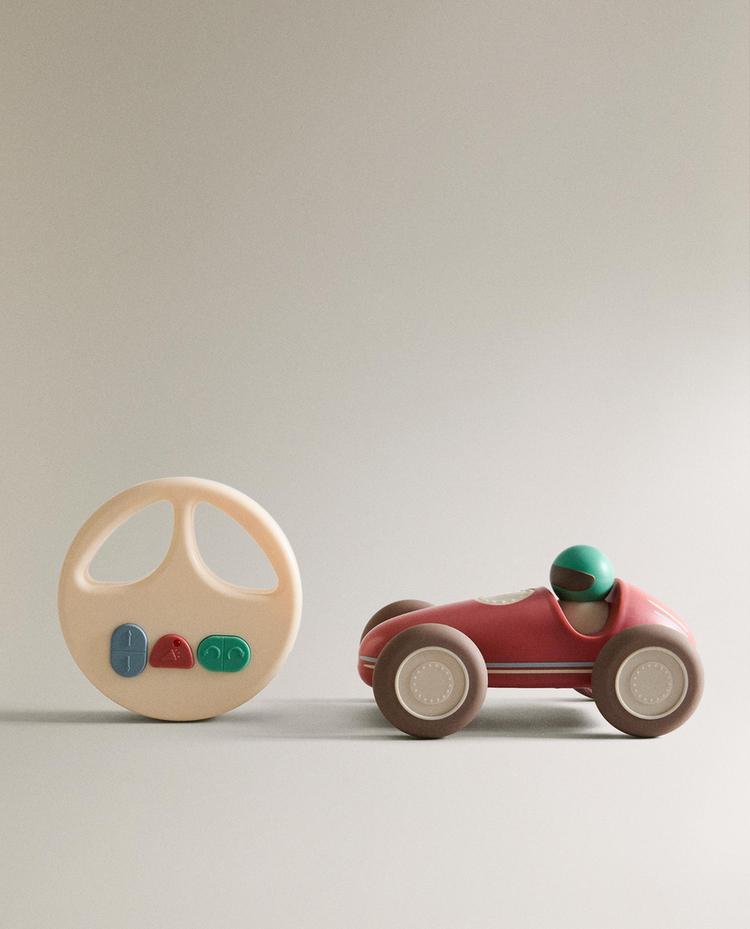 Dziecięca zabawka zdalnie sterowana. Zestaw zawiera samochód wyścigowy i pilota. Działa na 3 baterie AAA (brak w zestawie).