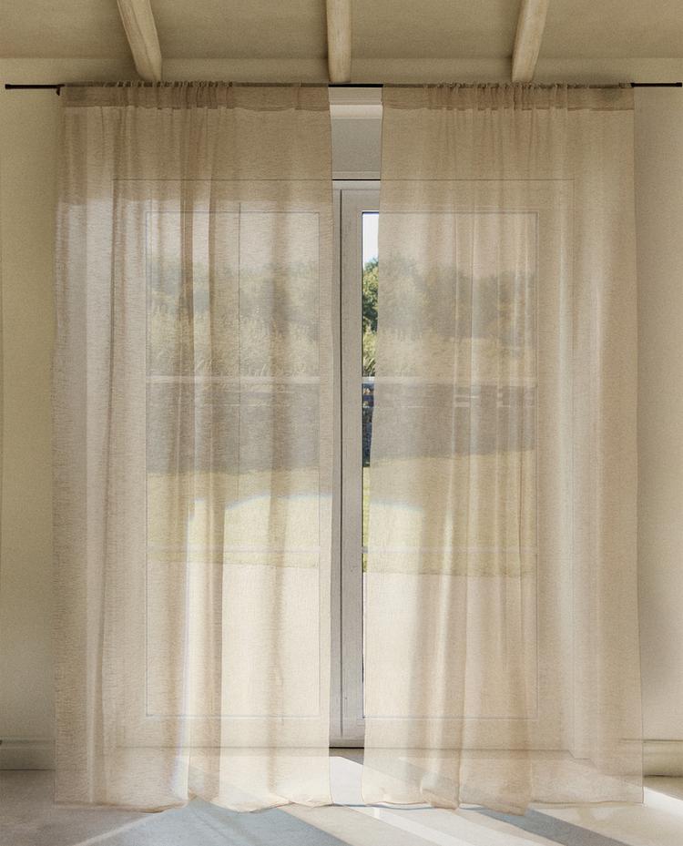 Pack de duas cortinas confecionadas em linho, oferece uma cobertura subtil que permite a passagem da luz, disponibilizando-a para criar um ambiente quente e acolhedor.