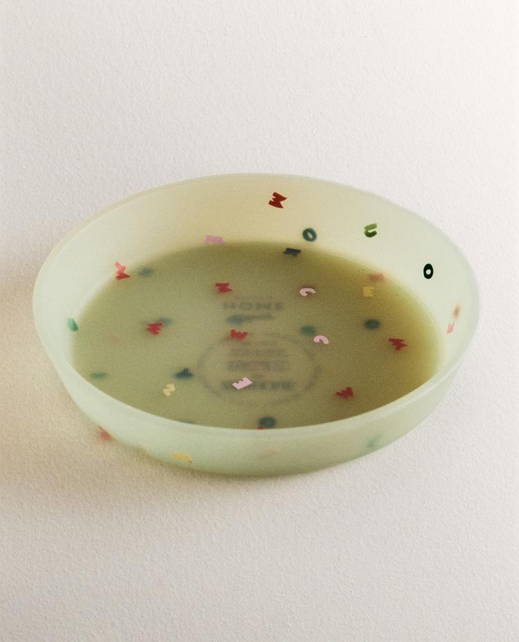 Prato infantil em silicone com estampado de letras e símbolos inspirados no universo de Mickey & Minnie ©Disney.