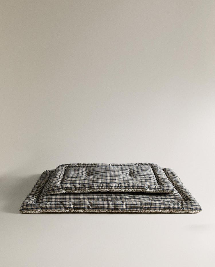 Topper para animais de estimação confecionado em algodão, com design acolchoado e estampado reversível: de um lado de flores e do outro aos quadrados vichy.