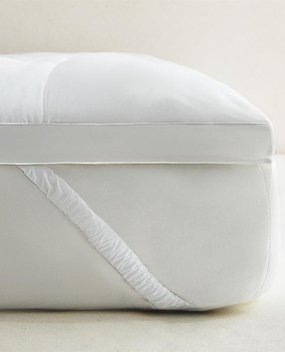Altura de 4,5 cm e com 4 fitas elásticas nos cantos para o ajustar a todo o tipo de colchões.