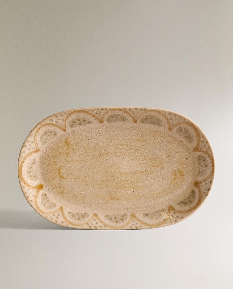 Dosificador de jabón para baño fabricado en terracota con acabado mate en tonos beige y crema, cuerpo cilíndrico de paredes rectas y superficie con vetas irregulares, equipado con bomba dosificadora de acabado color plata.