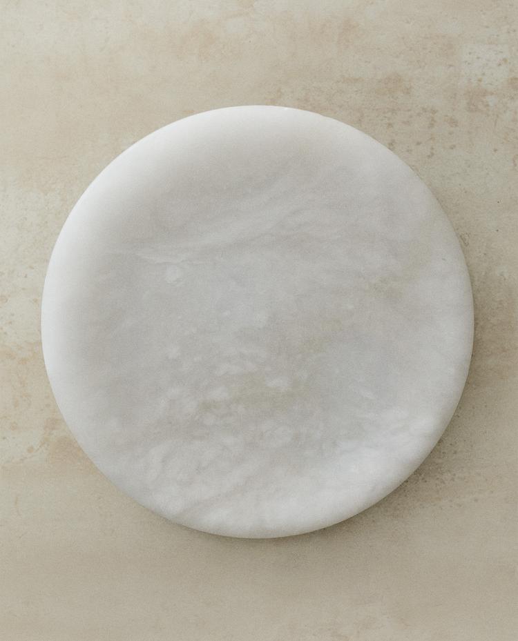 صينية حمام من حجر الألباستر بتصميم بسيط.