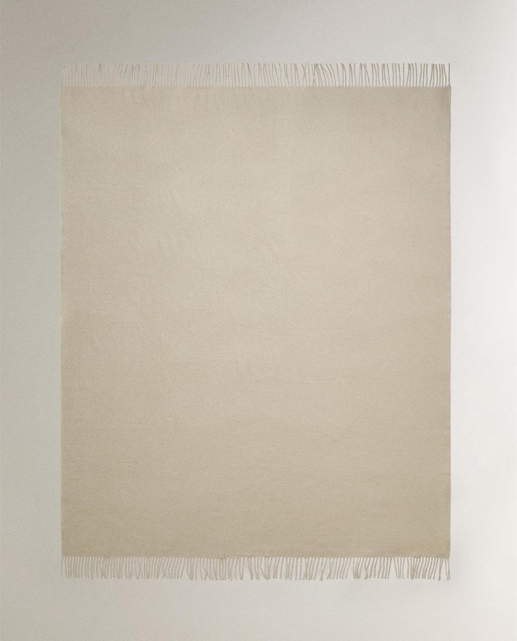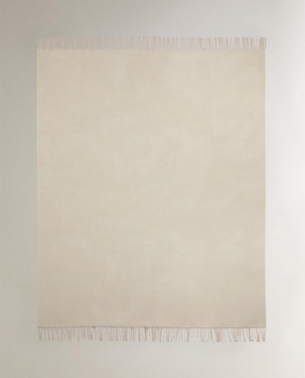 Pătură din cașmir, de culoare uni, finisată cu franjuri.