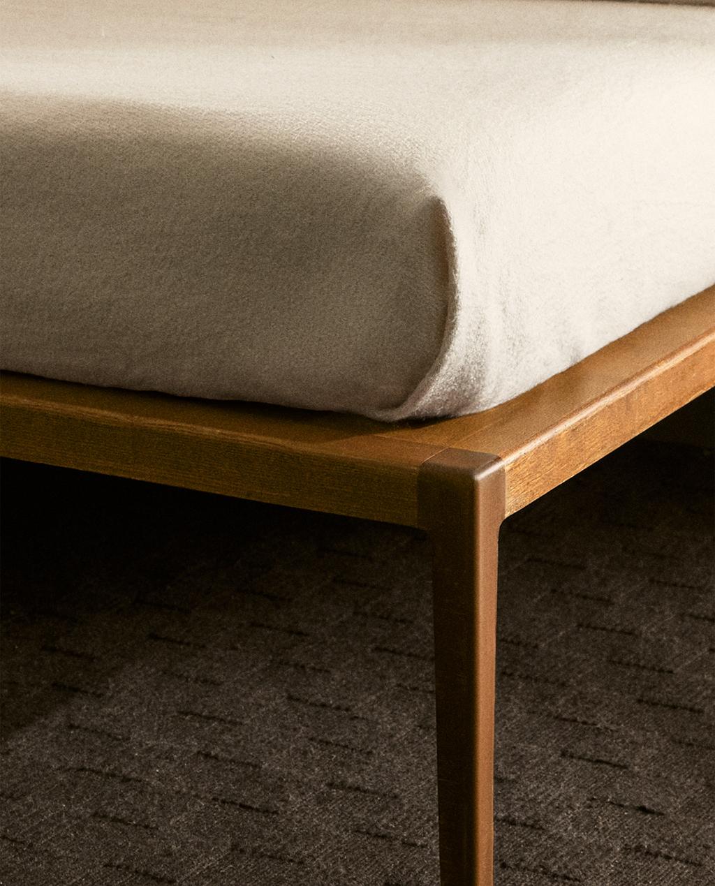 Drveni okvir za krevet sa zaobljenim ivicama.